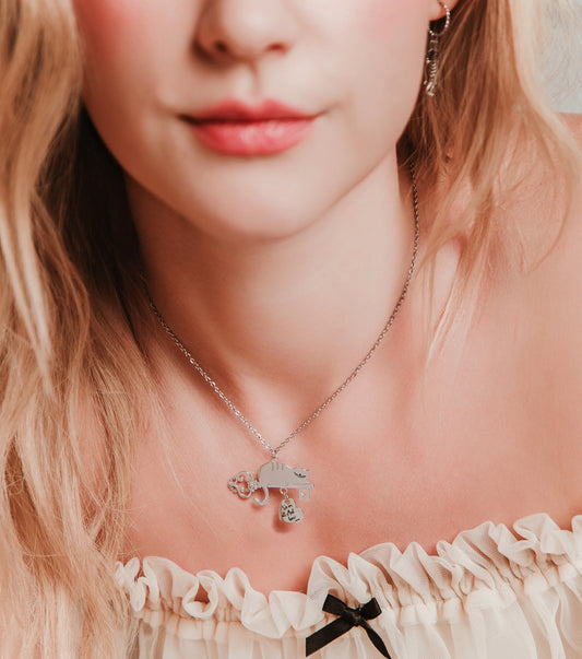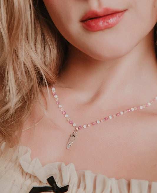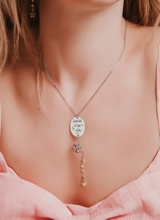 Collana in oro e ciondolo con Diamanti, rubini e corallo rosa