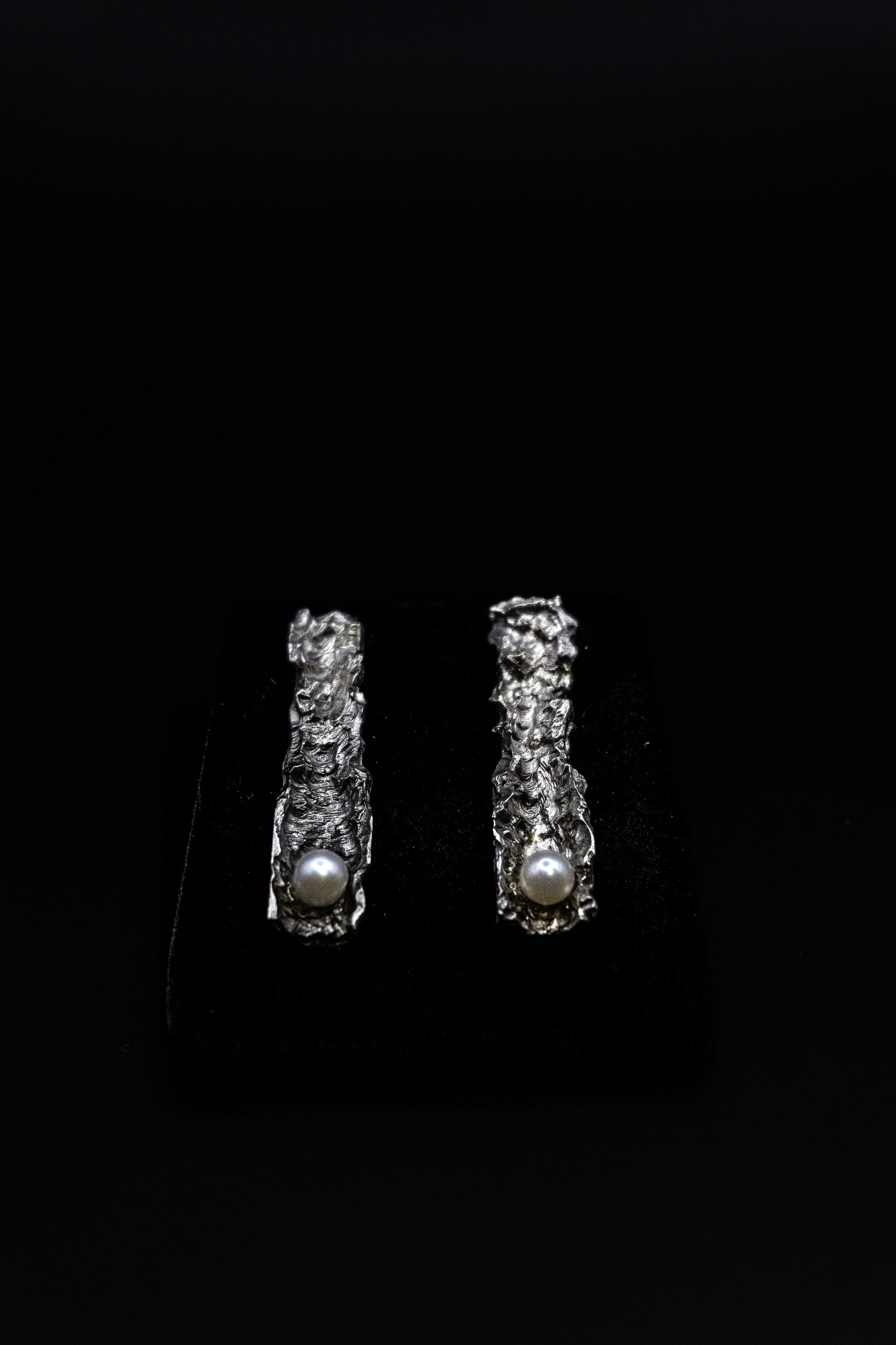 Orecchini linea Frammenti di Luna in Argento con perle vere di circa 4.0-4.5mm .Pezzo unico