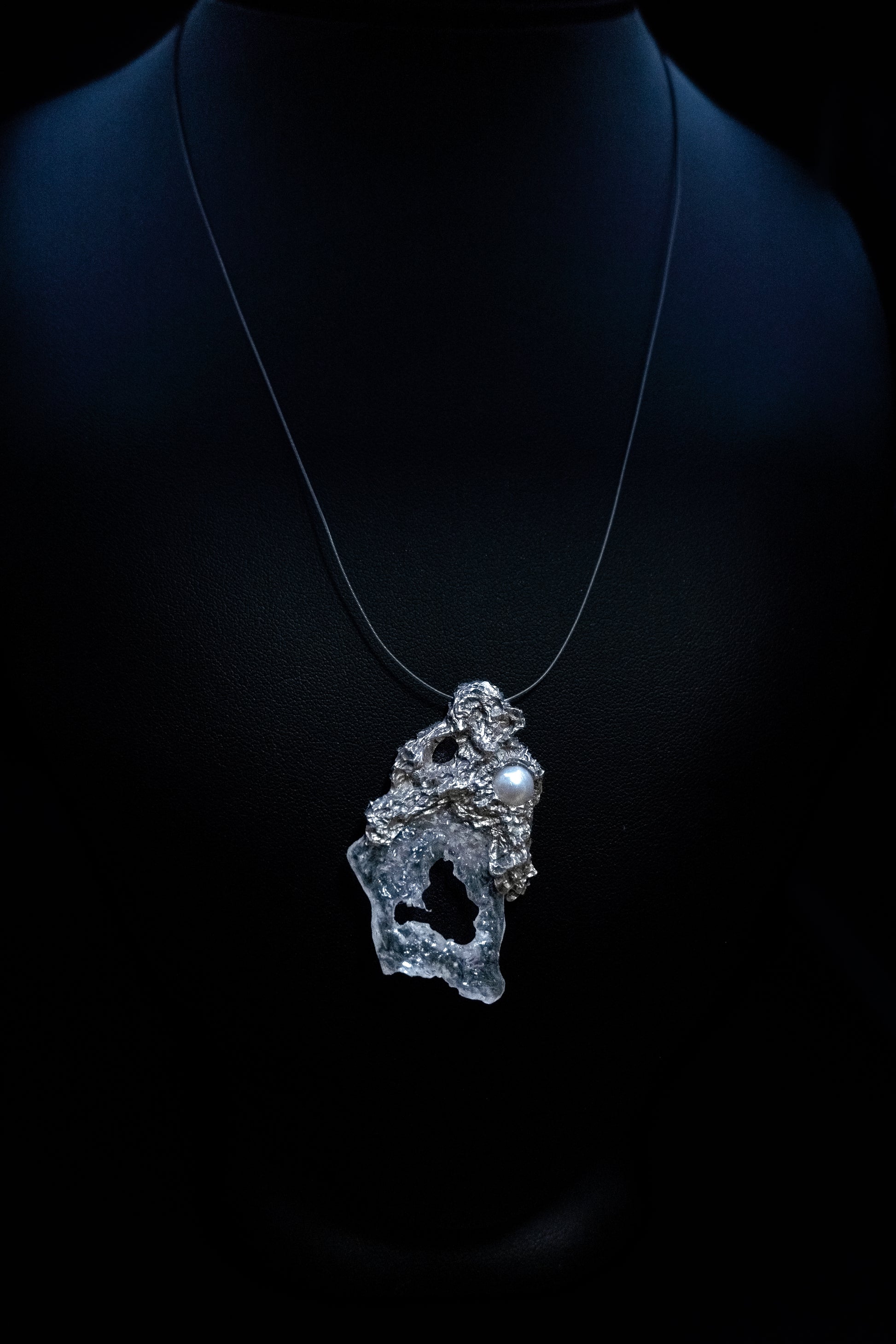 Collana e ciondolo in Argento e resina della linea Frammenti di Luna con incastonato una vera perla di circa 8 mm.