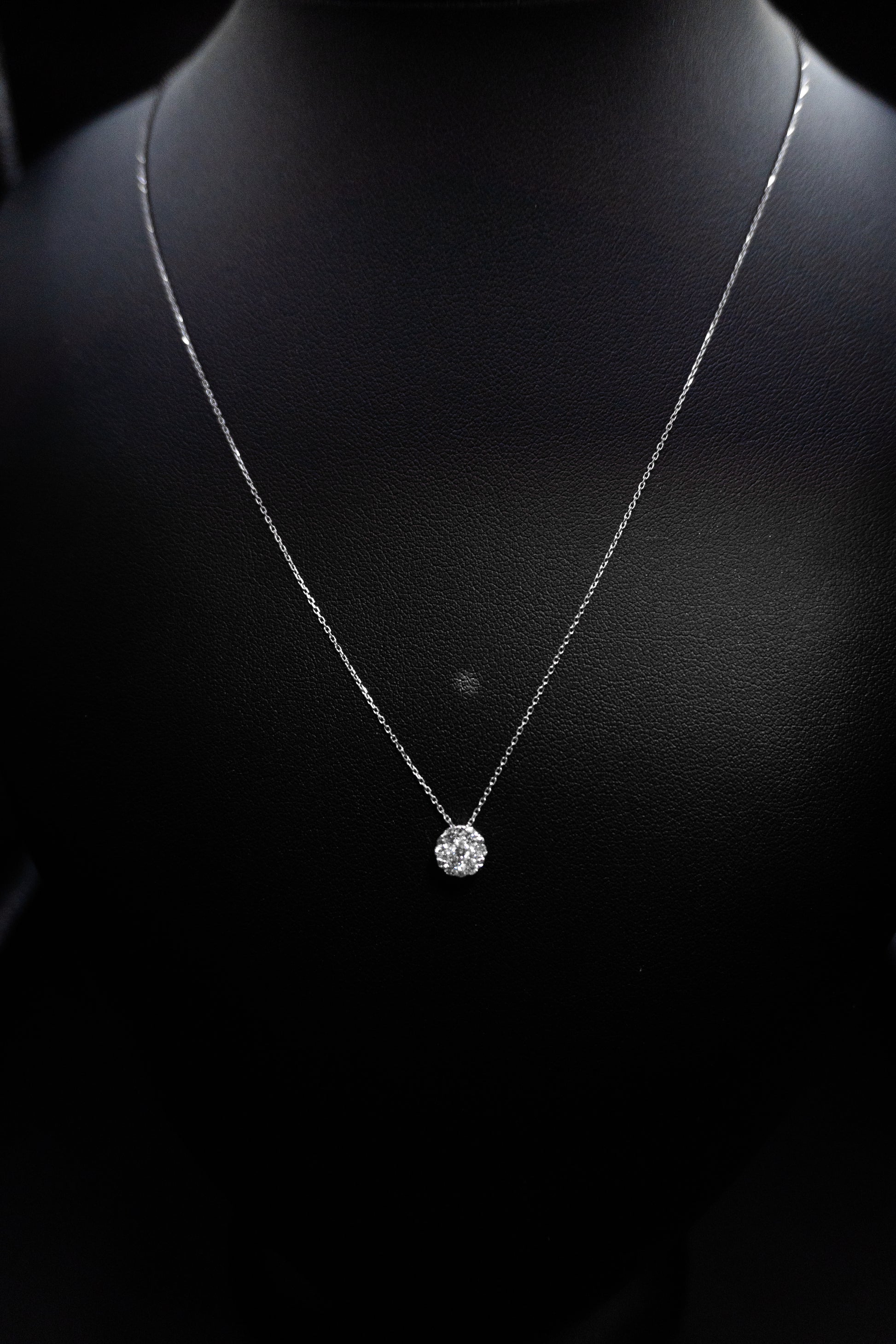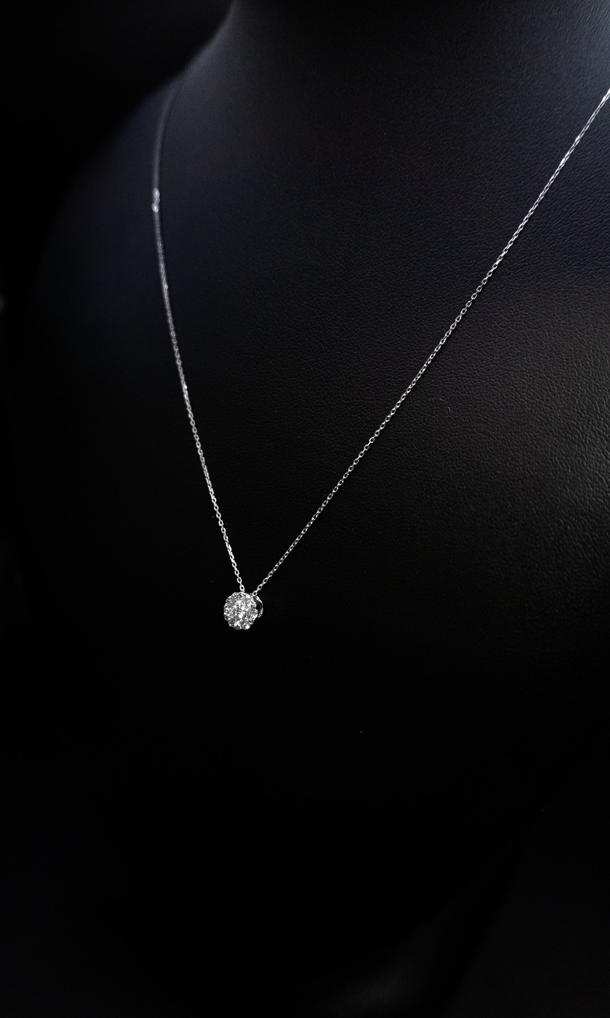 Collana e ciondolo fiore in oro 18 k .ti con Diamanti taglio brillante carati 0.38