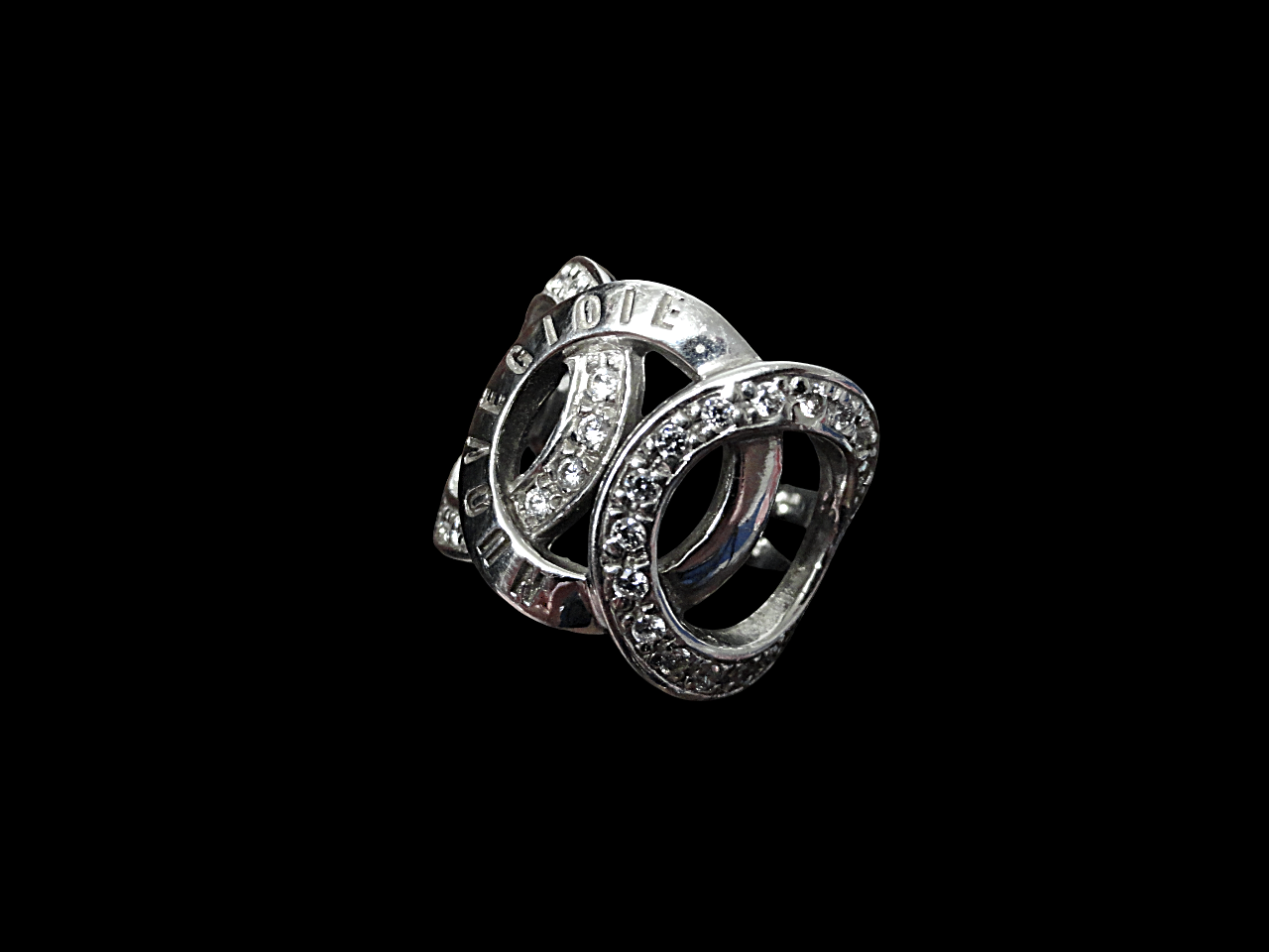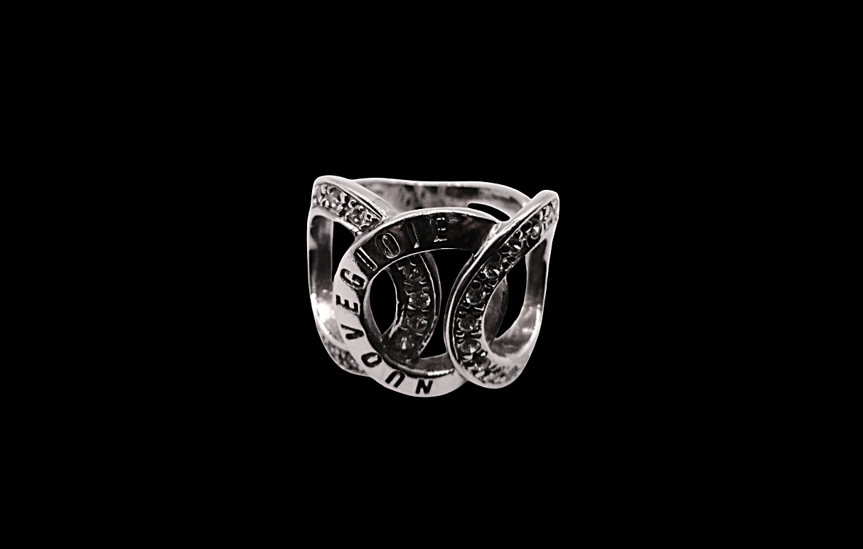 Anello fascia in argento 925 con zirconi taglio brillante.