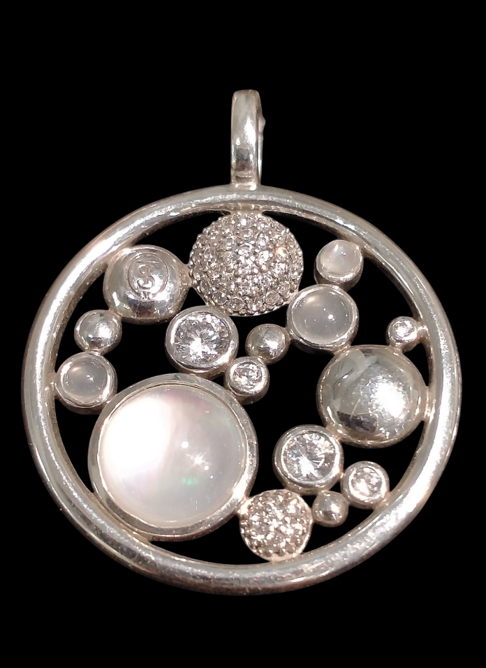 Ciondolo argento 925 con zirconi taglio brillante e pietre vere. Dimensioni ciondolo cm 4x3