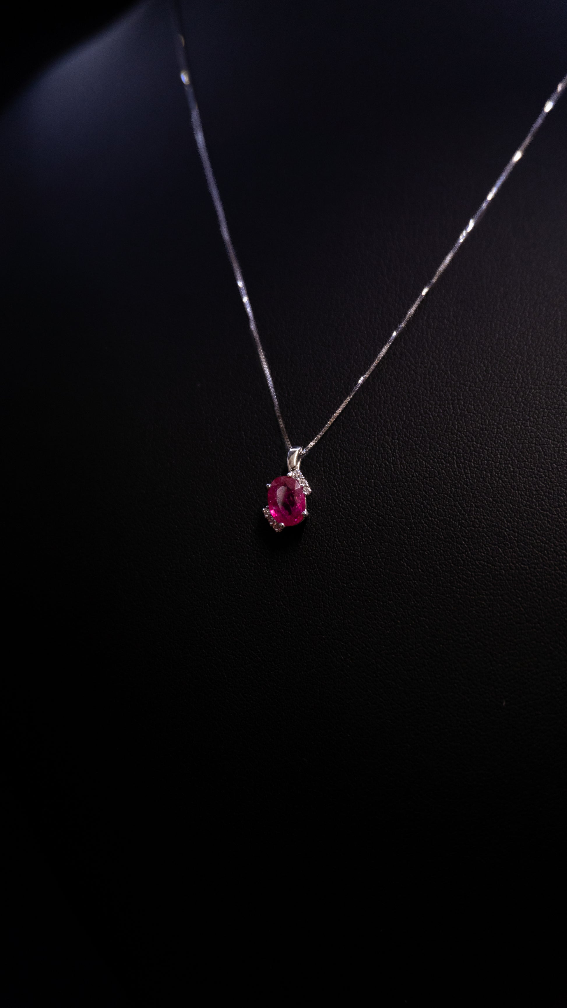 Collana in oro 18 k. ti con ciondolo rubino di carati 0.95 e diamanti taglio brillante carati 0.04.