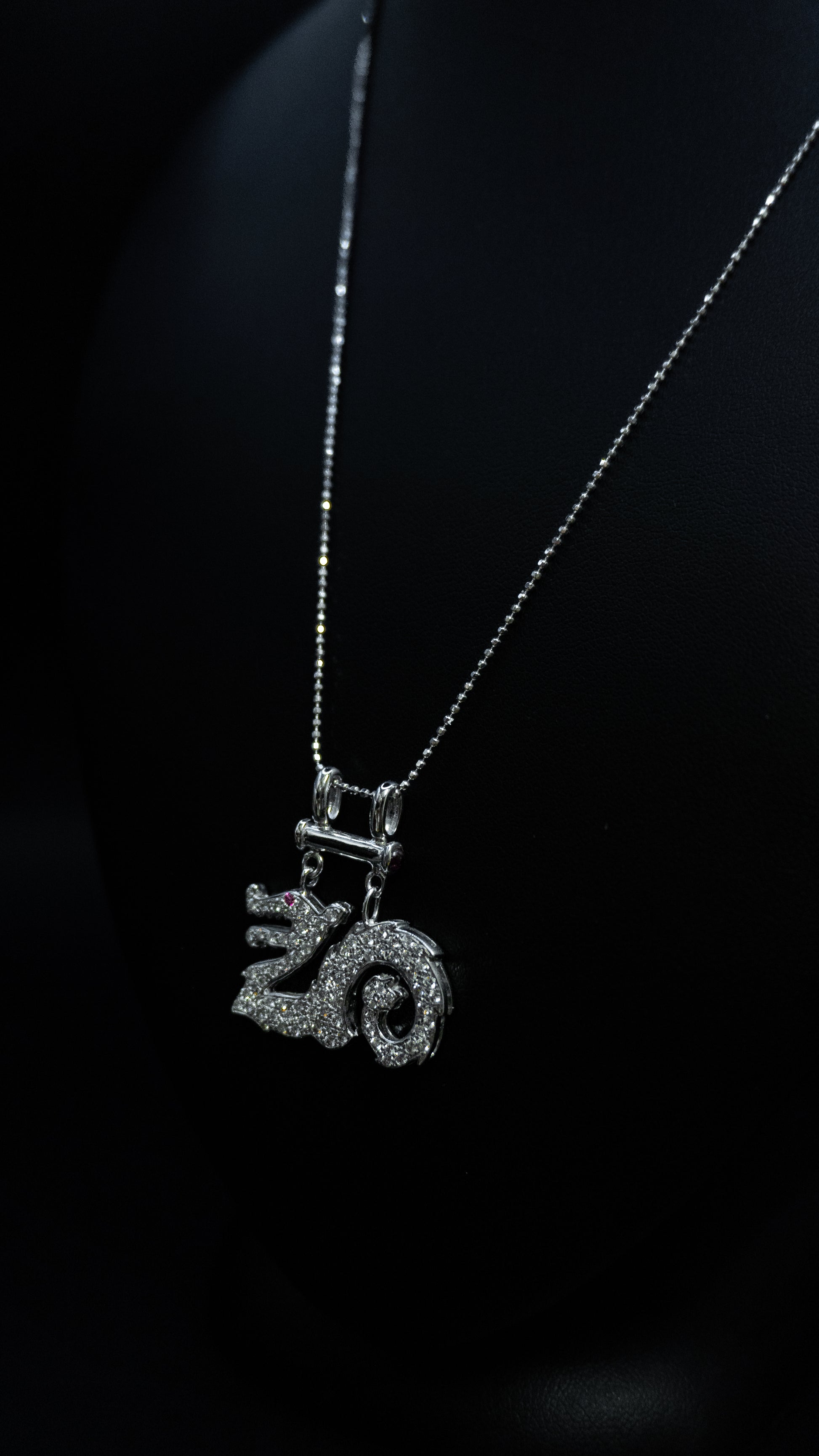 Collana in oro e ciondolo Dragone con Diamanti e rubini