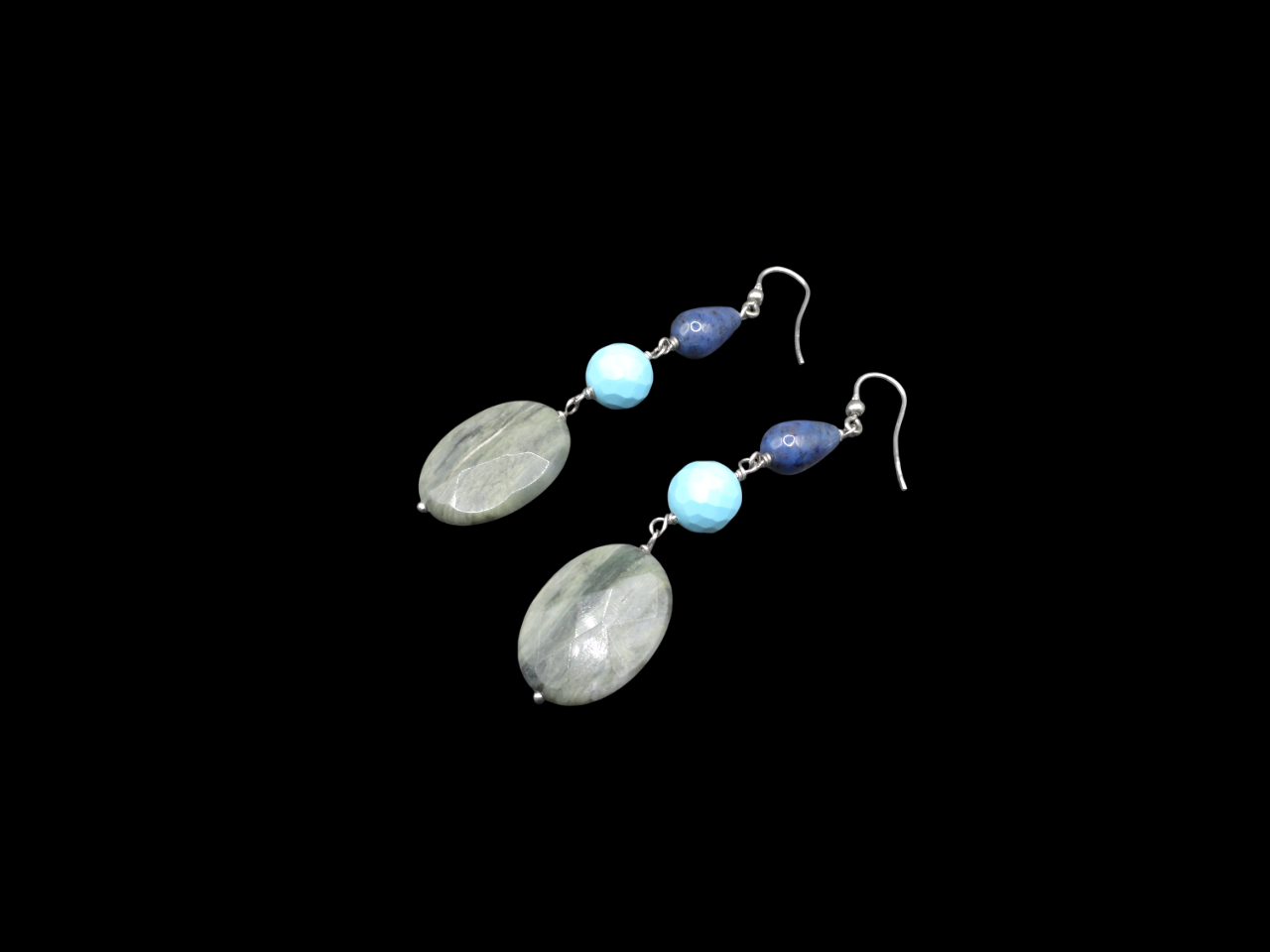 Orecchini in argento 925 e pietre naturali. Lunghezza orecchini cm 7.5