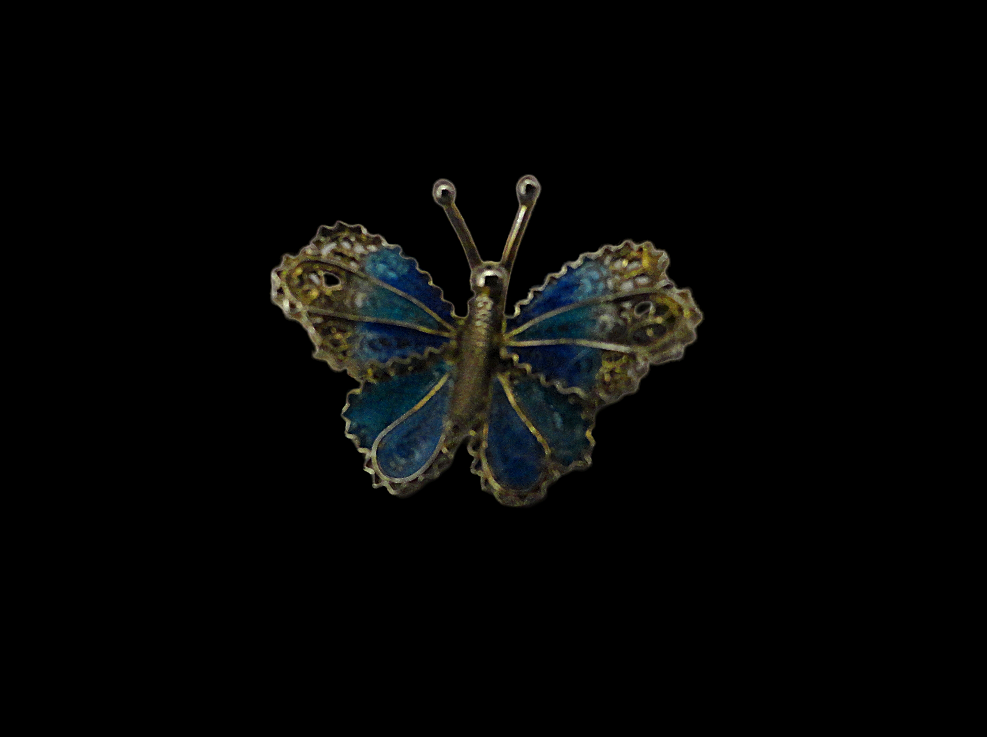 Spilla in argento 925 con smalti e delicata lavorazione in filigrana.