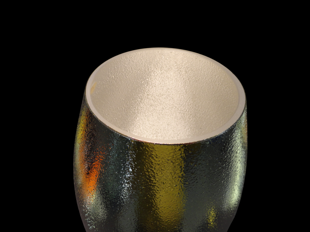 Vaso vetro e argento per interni di altezza 30 cm larghezza 18 cm e diametro 12 cm.